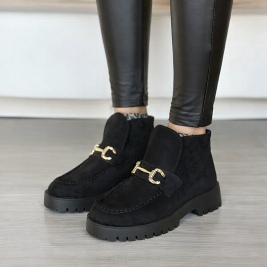 Mocassini Ginevra con caviglia alta scarponcini fibbia oro