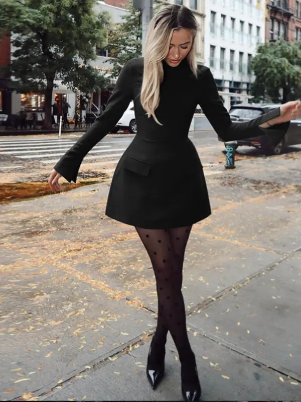 Abito corto elegante a maniche lunghe.
